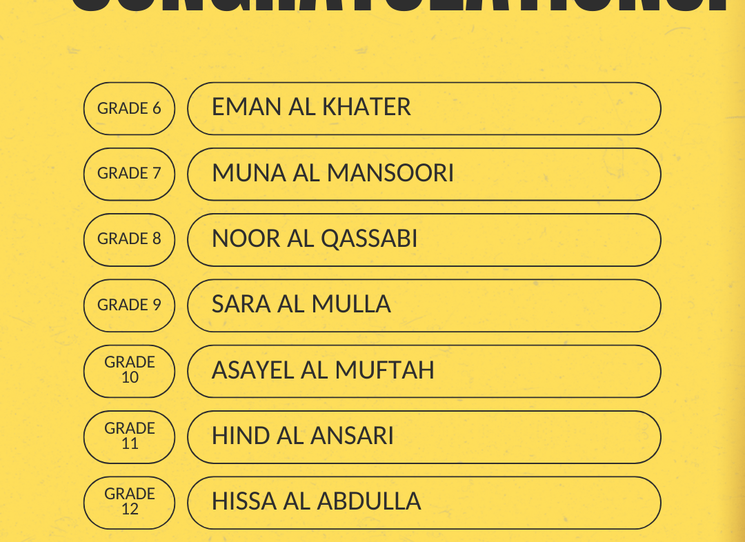 Student Body Reporter: Noor Al Qassabi (Gr. 8)